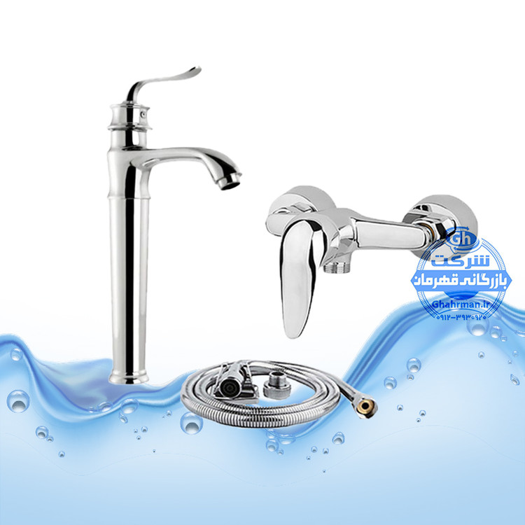 ست ۳ عددی شیر روشویی پایه بلند مدل بامبو + شیر توالت مدل دنیز + شلنگ توالت | کروم براق | شیرآلات برند آیدا صنعت مدل دنیز