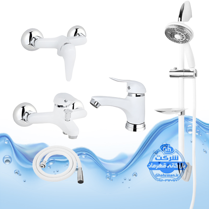 ست ۵ عددی شیرآلات مدل دنیز | شیر روشویی + شیر ظرفشویی + توالت + حمام + علم دوش یونیکا | سفید کروم براق