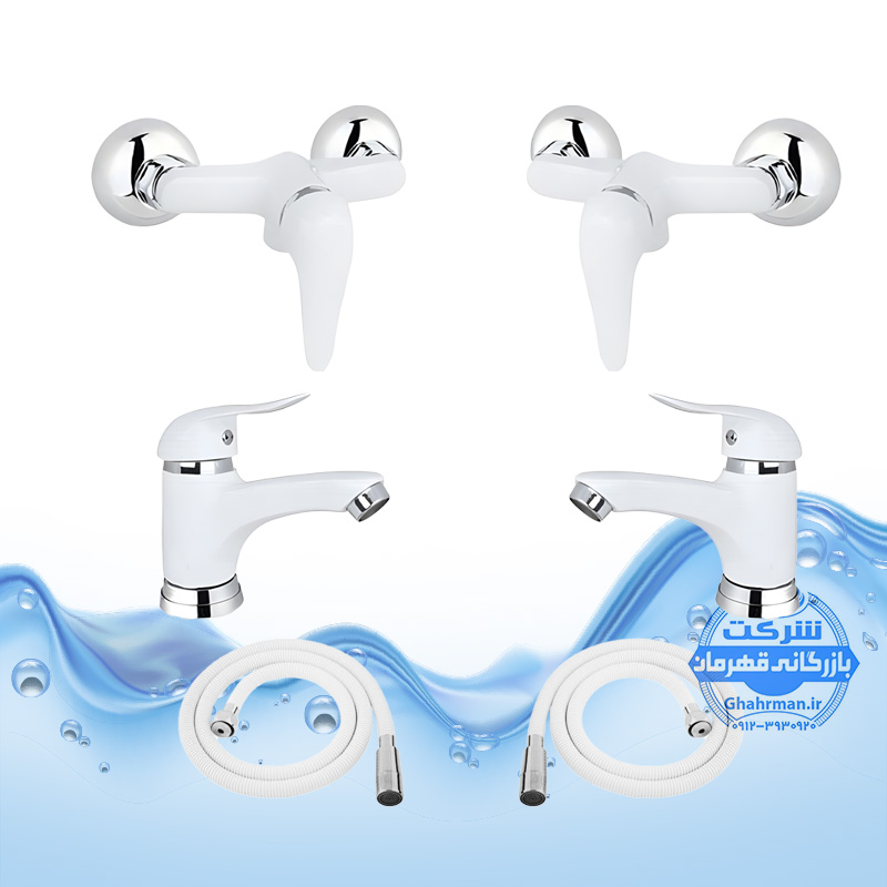 ست ۶ عددی شیرآلات مدل دنیز | ۲ عدد شیر روشویی + ۲ عدد شیر توالت + ۲ عدد شلنگ توالت | سفید کروم براق