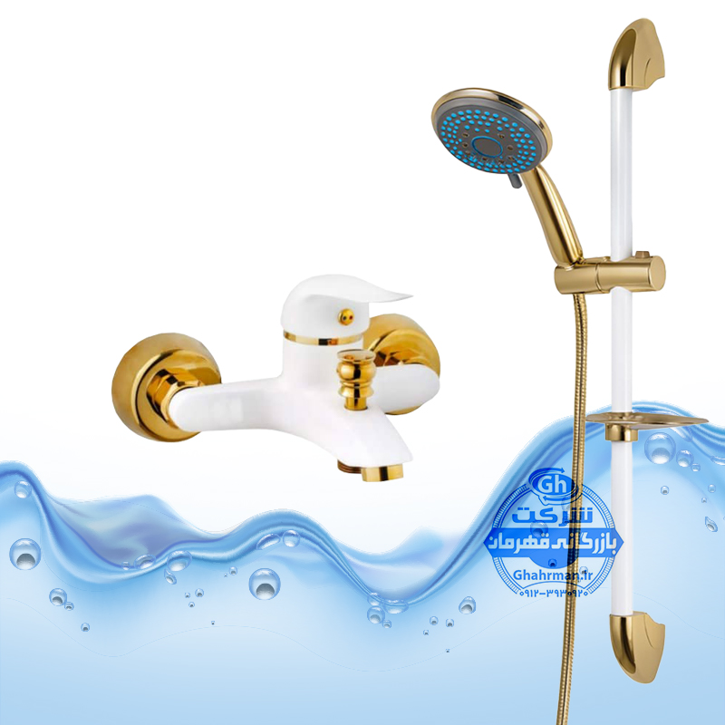 ست ۲ عددی شیر حمام و علم دوش یونیورست مدل یونیکا | سفید طلایی | شیرآلات برند آیدا صنعت مدل دنیز
