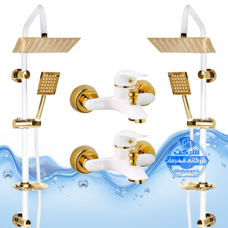 ست ۴ عددی دوش حمام با علم یونیورست صفحه استیل شیرآلات برند آیدا صنعت مدل دنیز | سفید طلایی